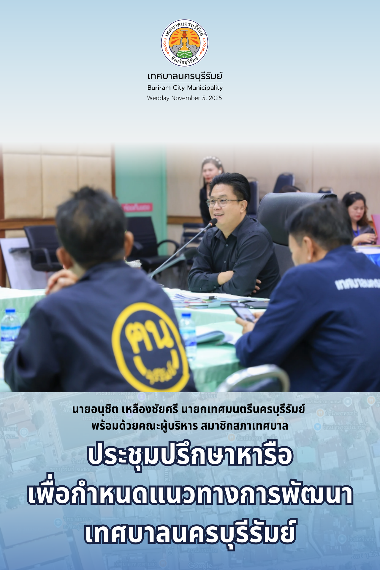 06 พฤศจิกายน 2568 ฮิต: 28 ประชุมปรึกษาหารือเพื่อกำหนดแนวทางการพัฒนาเทศบาลนครบุรีรัมย์ พิมพ์ อ่านเพิ่มเติม...
