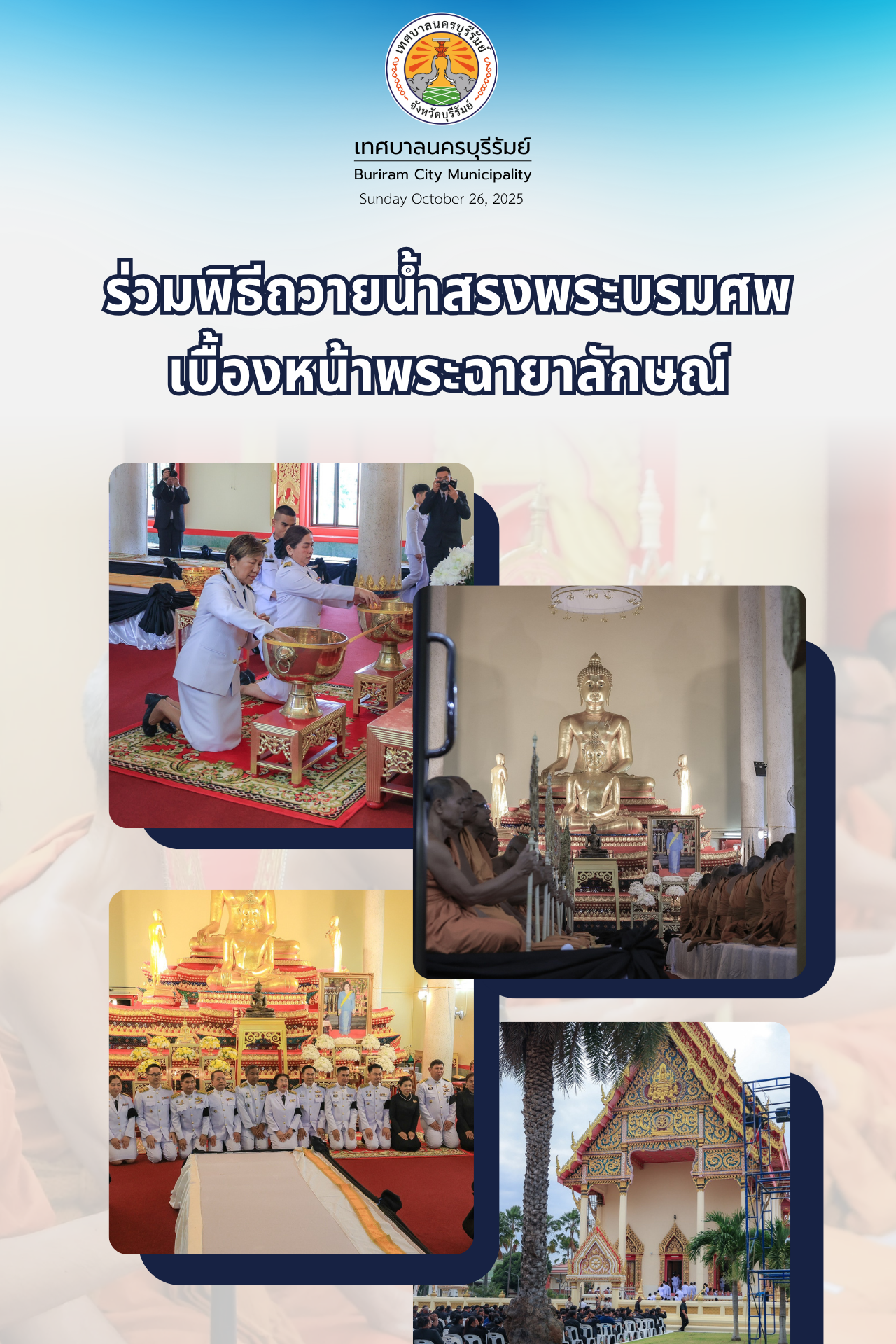 วันที่ 26 ตุลาคม 2568 นายอนุชิต เหลืองชัยศรี นายกเทศมนตรีนครบุรีรัมย์ มอบนายแพ เดชพร รองนายกเทศมนตรีนครบุรีรัมย์ นางสิรินันทน์ มณีราชกิจ เลขานุการนายกเทศมนตรีนครบุรีรัมย์ ร่วมในพิธีถวายราชสักการะพระบรมศพและลงนามถวายความอาลัย แด่สมเด็จพระนางเจ้าสิริกิติ์ พระบรมราชินีนาถ พระบรมราชชนนีพันปีหลวง หน้าพระบรมฉายาลักษณ์ และพิธีธรรมสวดพระอภิธรรมพระบรมศพ โดยพระสงฆ์สมณศักดิ์ จำนวน 93 รูป มีหัวหน้าส่วนราชการ ข้าราชการ และประชาชนเข้าร่วมอย่างพร้อมเพรียงด้วยความสำนึกในพระมหากรุณาธิคุณ
