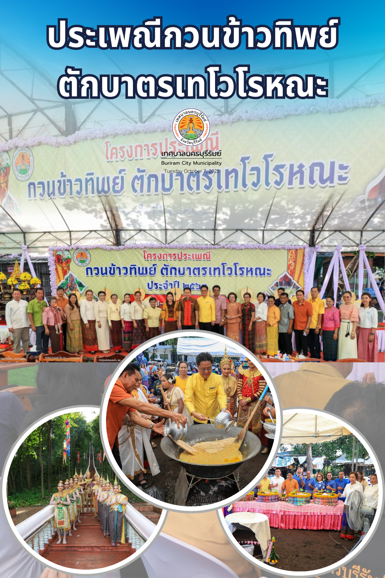 02 ตุลาคม 2568 ฮิต: 541 นายอนุชิต เหลืองชัยศรี นายกเทศมนตรีนครบุรีรัมย์ พร้อมคณะผู้บริหาร ตรวจสถานที่จัดงานกวนขาวทิพย์-ตักบาตรเทโวโรหณะ พิมพ์ อ่านเพิ่มเติม...