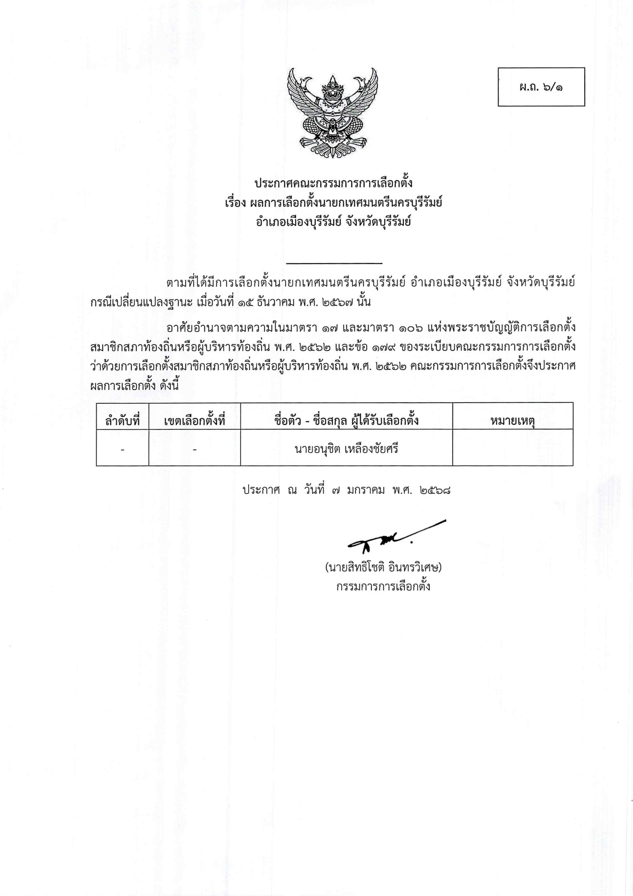ข่าวประชาสัมพันธ์ - ผลการเลือกตั้ง นายกเทศมนตรีนครบุรีรัมย์ อำเภอเมืองบุรีรัมย์ จังหวัดบุรีรัมย์