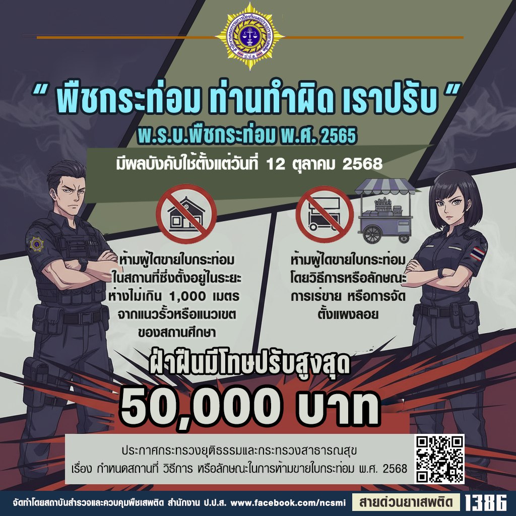 ห้าขาย "ใบกระท่อม" ในพื้นที่ห้ามขาย