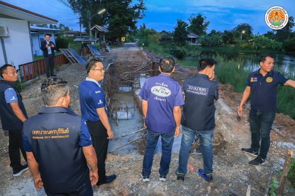 เดินหน้าแก้ไขปัญหาเร่งด่วนเพื่อความปลอดภัย! ท่านนายกฯ นำทีมลุยตรวจจุดถนนทรุด หมู่ 11 บ้านโพธิ์ศรีสุข ต.อิสาณ