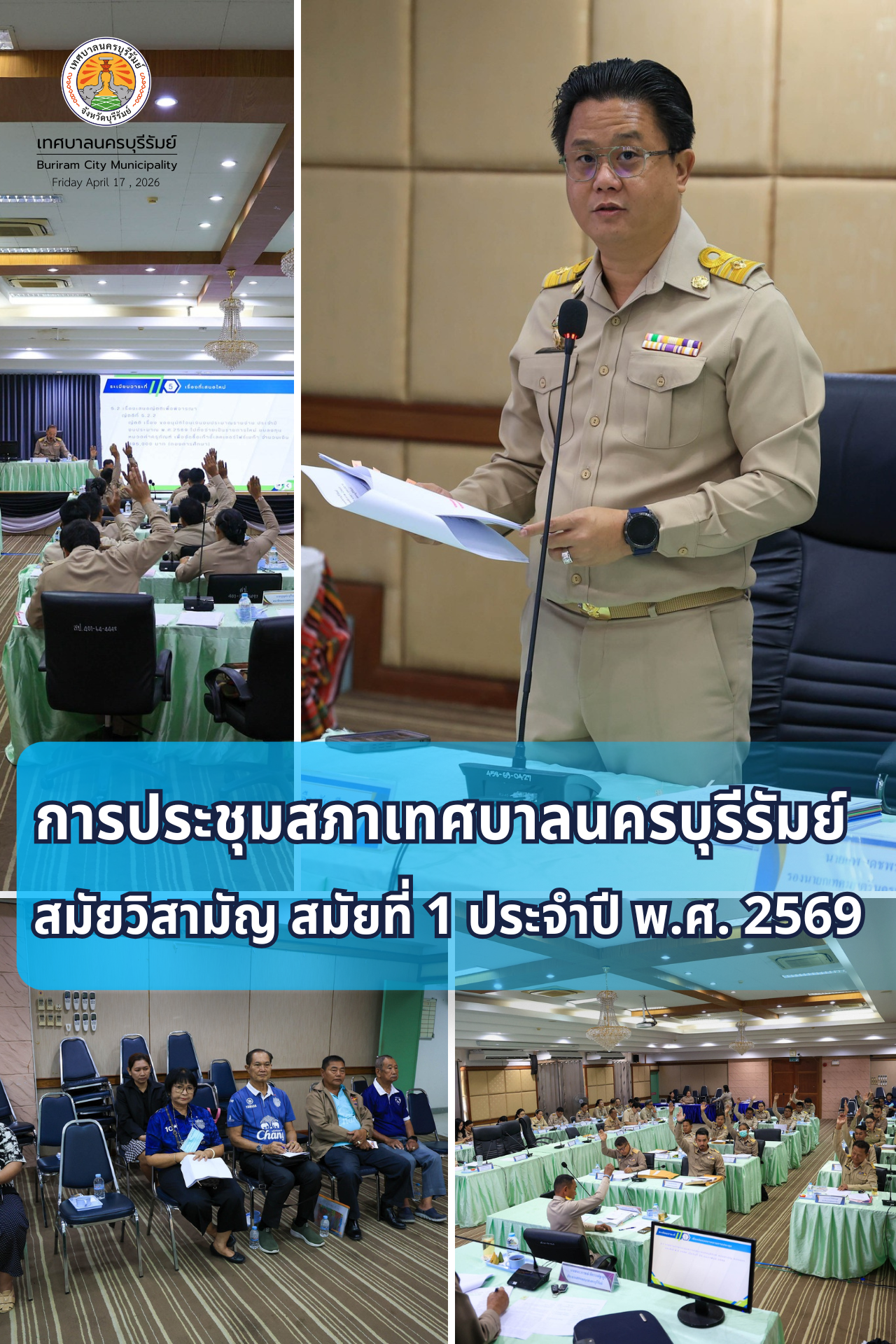 Webmaster ข่าวกิจกรรมโครงการ 21 เมษายน 2569 ฮิต: 32 การประชุมสภาเทศบาลนครบุรีรัมย์ สมัยวิสามัญ สมัยที่ 1 ประจำปี พ.ศ. 2569 พิมพ์ Gallery_detail Youtube การประชุมสภาเทศบาลนครบุรีรัมย์ สมัยวิสามัญ สมัยที่ 1 ประจำปี พ.ศ. 2569 วันศุกร์ที่ 17 เมษายน 2569 เวลา 09.00 น. ณ ห้องประชุมสภา ชั้น 4 เทศบาลนครบุรีรัมย์