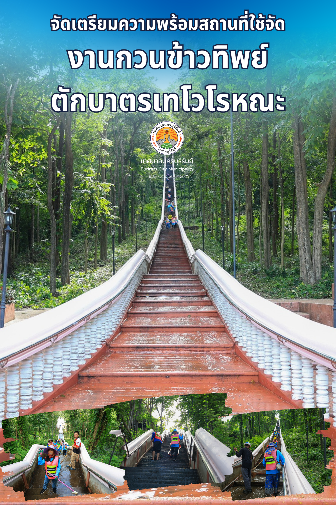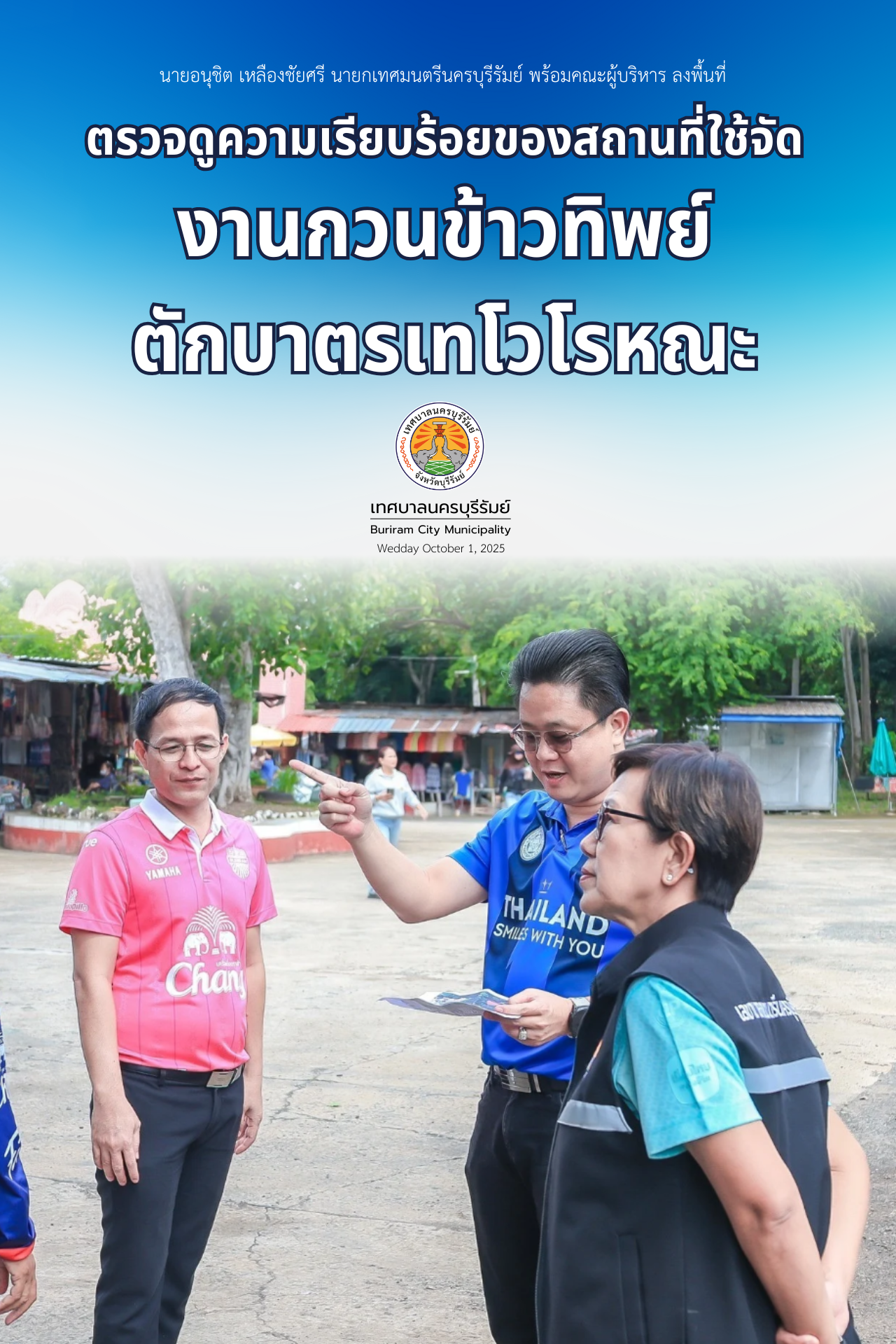02 ตุลาคม 2568 ฮิต: 541 นายอนุชิต เหลืองชัยศรี นายกเทศมนตรีนครบุรีรัมย์ พร้อมคณะผู้บริหาร ตรวจสถานที่จัดงานกวนขาวทิพย์-ตักบาตรเทโวโรหณะ พิมพ์ อ่านเพิ่มเติม...