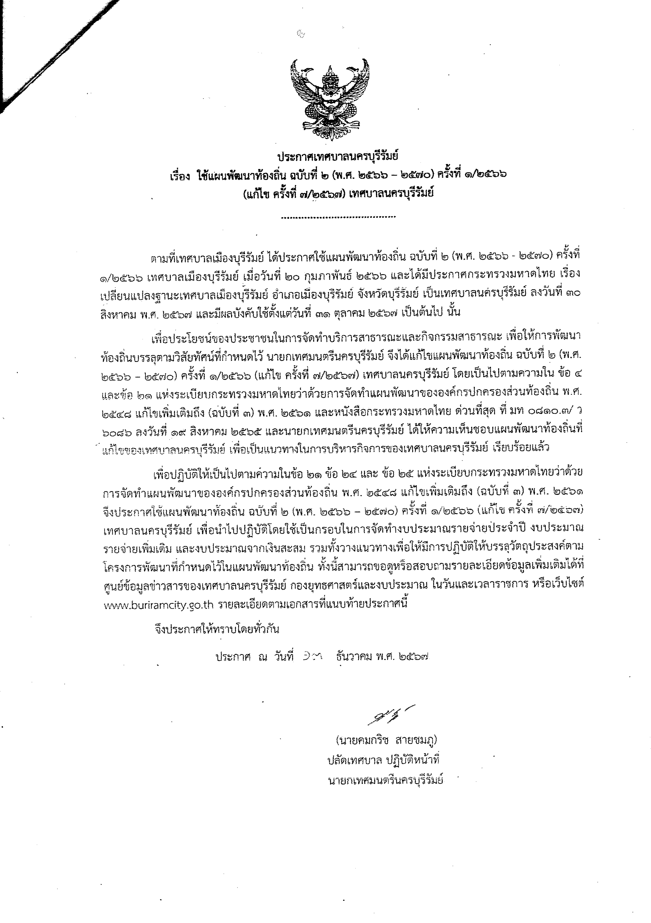 ประกาศ ใช้แผนพัฒนาท้องถิ่น ฉบับที่ 2 (พ.ศ. 2566 - 2570) ครั้งที่ 1_2566 (แก้ไข ครั้งที่ 7_2567) _000.png