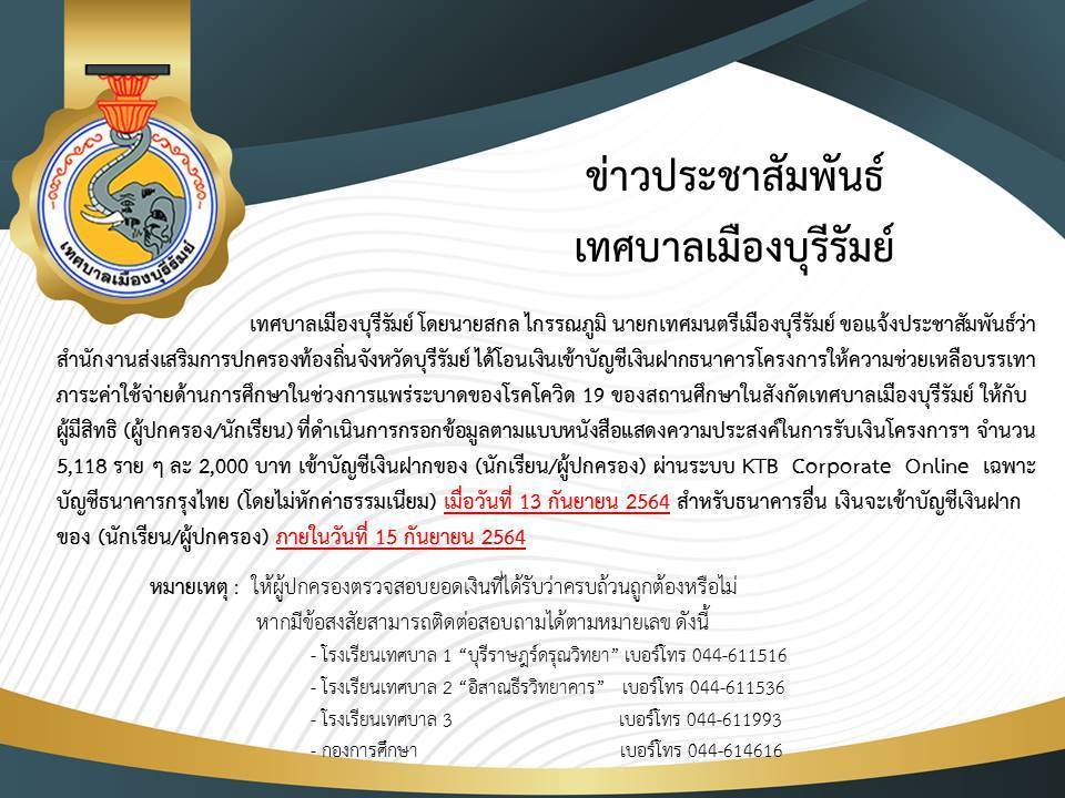 Webmaster ข่าวประชาสัมพันธ์ 15 กันยายน 2564 ฮิต: 4342 ประชาสัมพันธ์การโอนเงินเงินช่วยเหลือบรรเทาภาระค่าใช้จ่ายด้านการศึกษา รายละ 2,000 บาท พิมพ์ Gallery_detail Youtube Tags: เงินช่วยเหลือ2000บาท