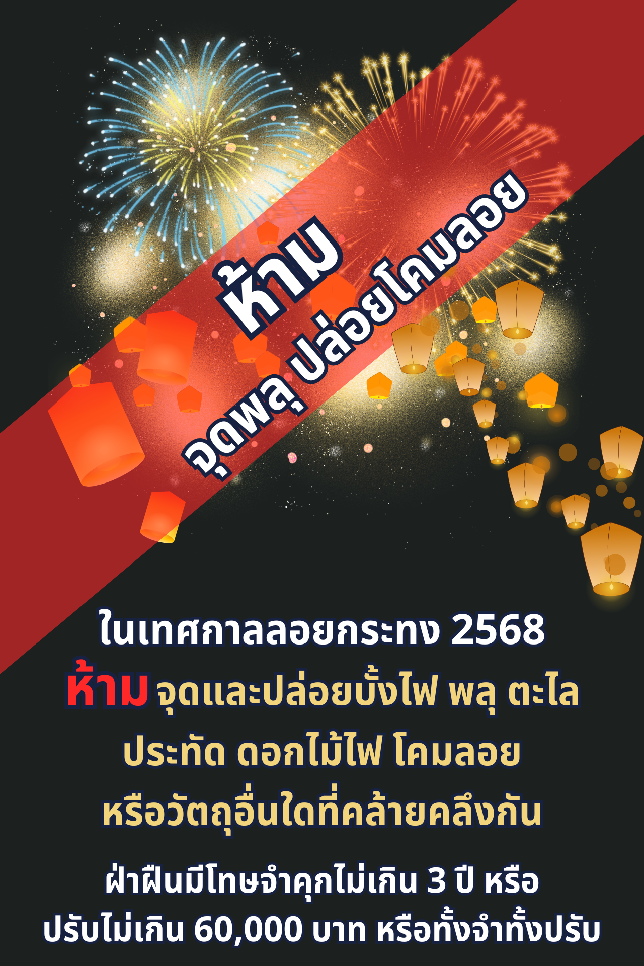 ห้ามจุดพลุ ปล่อยโคมลอย ในเทศกาลลอยกระทง