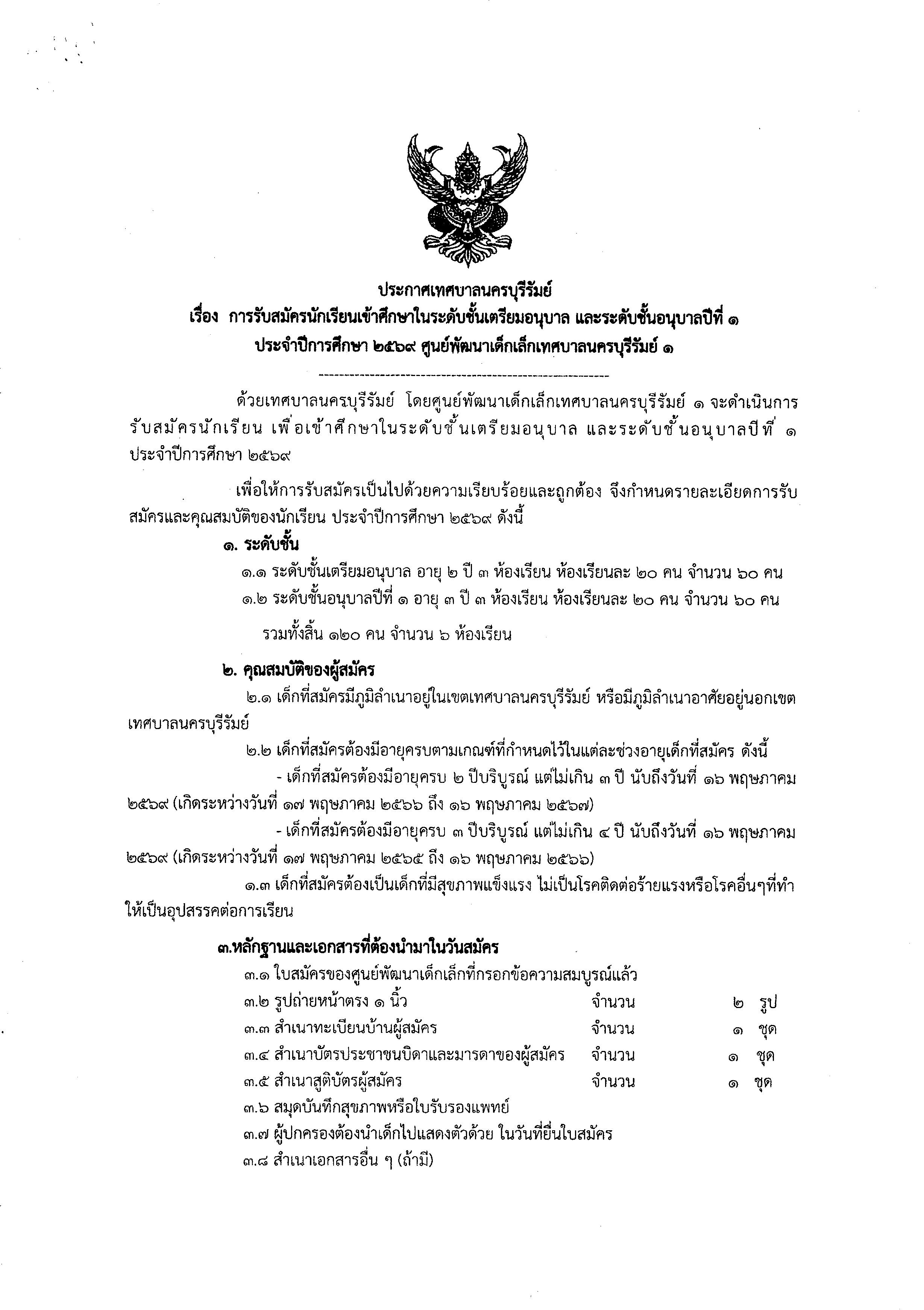 Webmaster ข่าวประชาสัมพันธ์ 10 กุมภาพันธ์ 2569 ฮิต: 23 ประกาศรับสมัครนักเรียนเข้าศึกษาในระดับชั้นเตรียมอนุบาล และระดับชั้นอนุบาลปีที่ 1 ประจำปีการศึกษา 2569 ศูนย์พัฒนาเด็กเล็กเทศบาลนครบุรีรัมย์ 1 พิมพ์ Gallery_detail Youtube