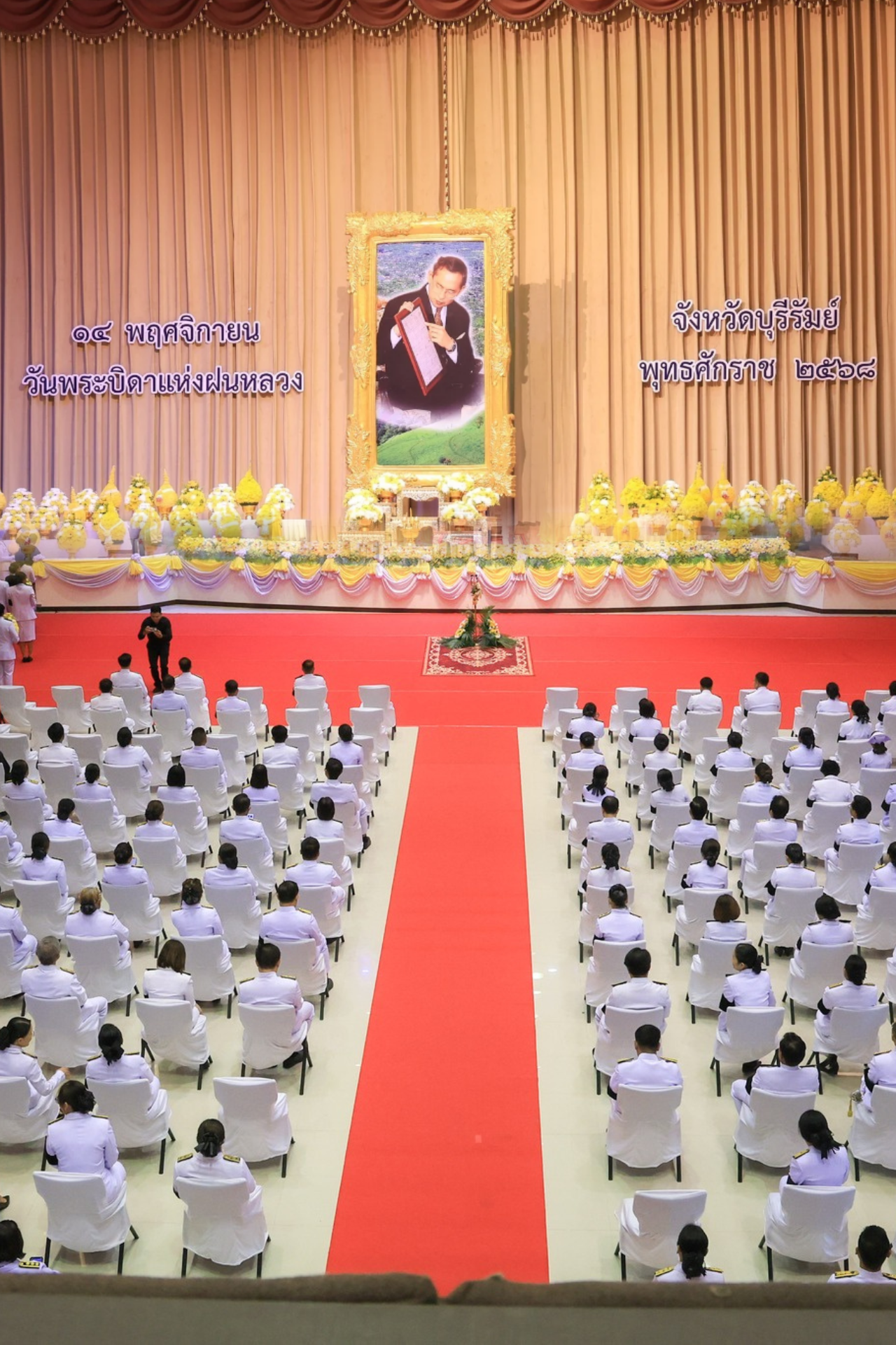 วันที่ 14 พฤศจิกายน 2568 นายอนุชิต เหลืองชัยศรี นายกเทศมนตรีนครบุรีรัมย์ มอบหมายให้ นายประเสริฐ จำปาแดง ผู้อำนวยการกองยุทธศาสตร์และงบประมาณ พร้อมด้วยข้าราชการ เจ้าหน้าที่เทศบาลนครบุรีรัมย์ ร่วมพิธีวางพานพุ่มดอกไม้สดเนื่องในวันพระบิดาแห่งฝนหลวง โดยมีนายปิยะ ปิจนำ ผู้ว่าราชการจังหวัดบุรีรัมย์ เป็นประธานในพิธี พร้อมด้วยห้วหน้าส่วนราชการ เข้าร่วมพิธีในครั้งนี้ ณ หอประชุมจังหวัดบุรีรัมย์