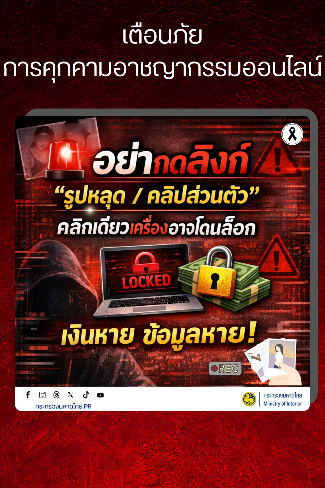 Webmaster ข่าวกิจกรรมโครงการ 18 มีนาคม 2569 ฮิต: 21 เตือนภัยคุกคามอาชญากรรมออนไลน์ ประจำวันที่ 18 มีนาคม 2569 พิมพ์